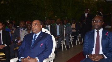 Les ministres Hugues Mbadinga Madiya et Séverin Oswald Mayounou, respectivement de la Promotion ...