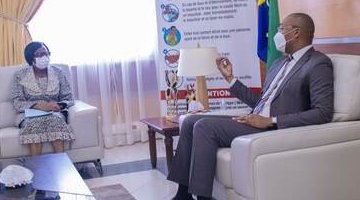 Le ministre de la Santé, Dr. Guy Patrick Obiang Ndong a reçu en audience ce mercredi, Christine ...