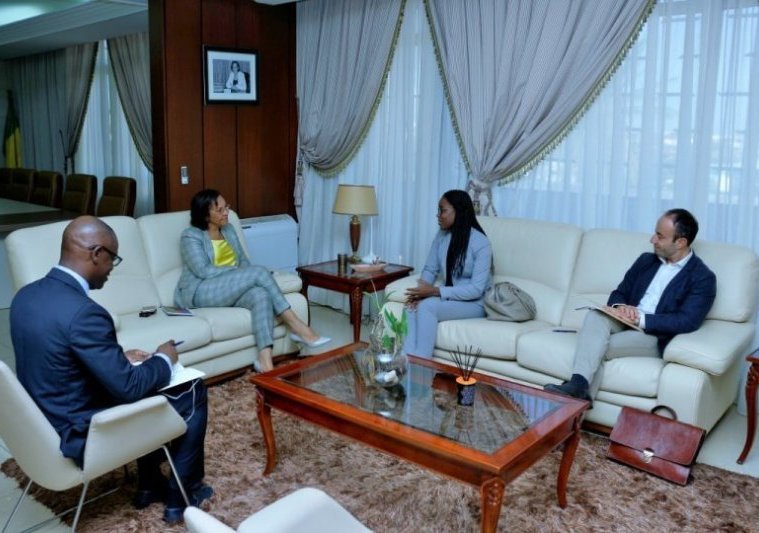 Le ministre de l’Emploi, de la Fonction publique, du Travail et de la Formation professionnelle chargé du dialogue social, Madeleine E. Berre, a reçu ce jeudi 12 septembre, Carmine Soprano et Grazuella Tovignon, respectivement consultant pour le groupe britannique CDC Plus et directrice des ressources humaines (DRH) de Gabon Special Economic Zone (GSEZ).