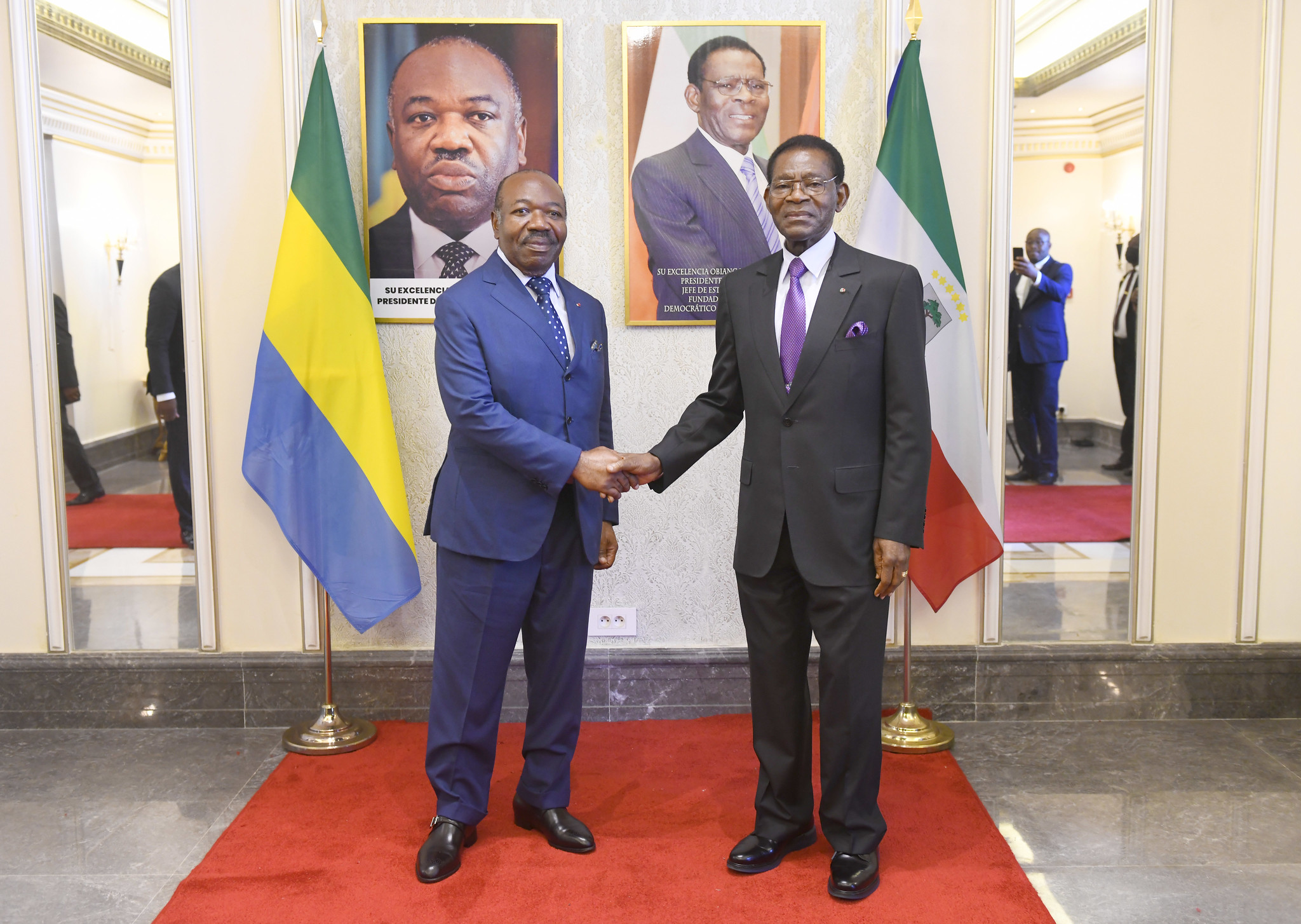 Ali BONGO a exprimé à OBIANG NGUEMA MBASOGO, au Gouvernement et au peuple équato-guinéen, sa profonde gratitude pour l’accueil chaleureux et fraternel, la généreuse hospitalité, ainsi que les marques d’attention dont lui et la délégation qui l’accompagnait ont fait l’objet pendant leur séjour en République de Guinée équatoriale.