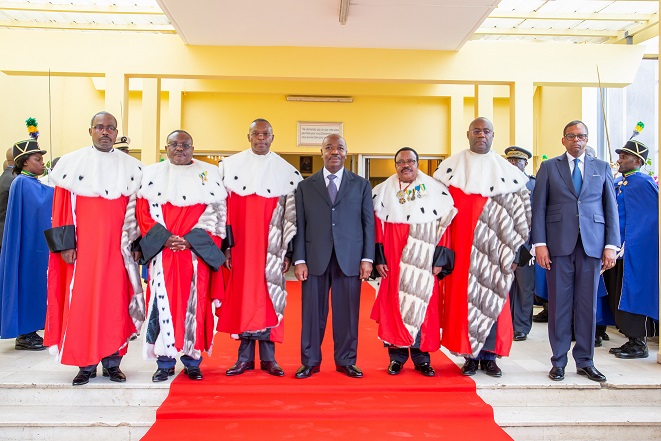 Ali Bongo Ondimba a pris part ce lundi au Palais de Justice de Libreville à l’audience solennelle de rentrée judiciaire des cours et tribunaux en sa qualité de Président du Conseil Supérieur de la Magistrature (CSM).