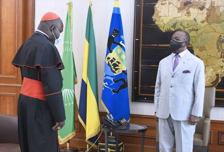 Ali Bongo a reçu ce mercredi au Palais Rénovation l’archevêque de Bangui, Son Eminence Dieudonné le Cardinal NZAPALAINGA, qu’accompagnait l’Archevêque Métropolitain de Libreville, Monseigneur Jean-Patrick IBA-BA.