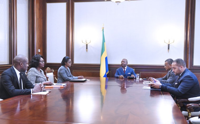 Ali Bongo s’est entretenu ce mercredi au Palais Rénovation avec la Premiere ministre Rose Christiane Ossouka Raponda qu’accompagnaient Edith Ekiri Mounombi Oyouomi, ministre du Budget et des comptes publics et Yann Koubdje, directeur général de la Comptabilité publique et du Trésor.