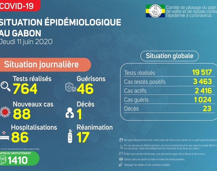 Gabon Matin vous livre le point journalier du Comité de pilotage du plan de veille et de riposte contre l’épidémie à Coronavirus au Gabon du 10 juin 2020.
