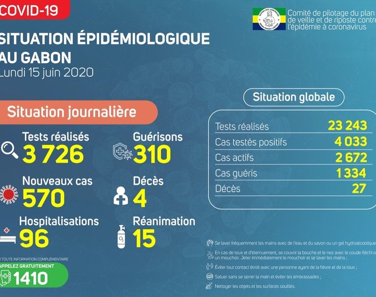 Gabon Matin vous livre le point journalier du Comité de pilotage du plan de veille et de riposte contre l’épidémie à Coronavirus au Gabon du 15 juin 2020.