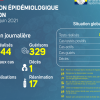 Nous avons enregistré 08 nouveaux cas positifs sur 2 915 tests réalisés, soit un taux de positivité de 0.3%, 01 personne hospitalisée dont 01 en réanimation, 298 nouvelles guérisons et 00 nouveau décès.