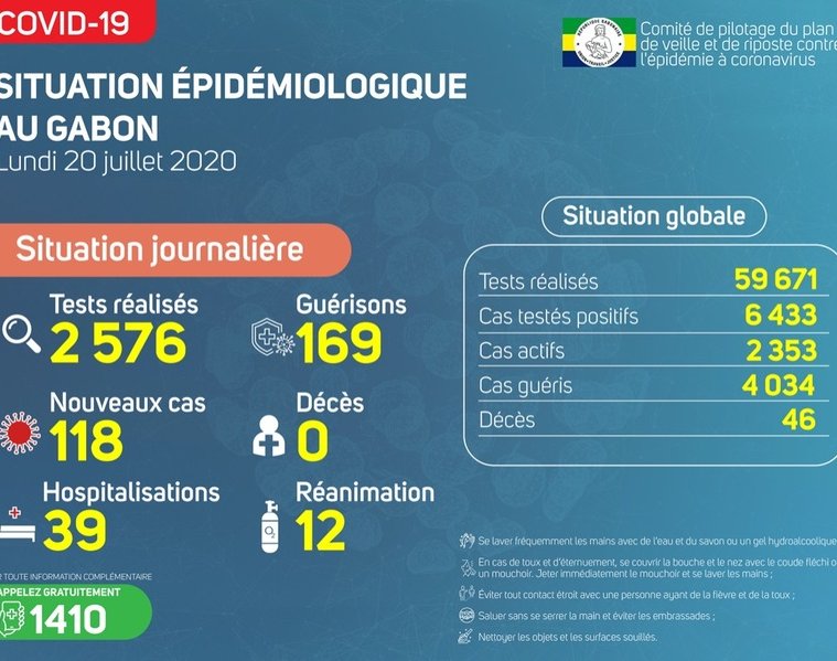Coronavirus au Gabon : point journalier du 20 juillet 2020