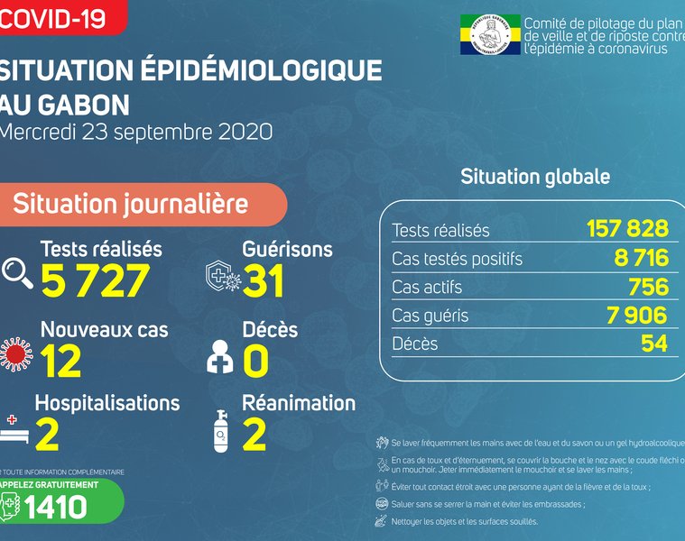 Gabon Matin vous livre le point journalier du Comité de pilotage du plan de veille et de riposte contre l’épidémie à Coronavirus au Gabon du 23 septembre 2020.