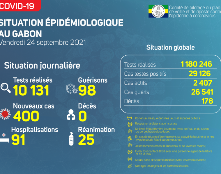 Coronavirus au Gabon : point journalier du 24 septembre 2021