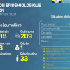 Nous avons enregistré 00 nouveau cas positif sur 620 tests réalisés, soit un taux de positivité de 0.00%, 00 personne hospitalisée dont 00 en réanimation, 02 nouvelles guérisons et 00 nouveau décès.