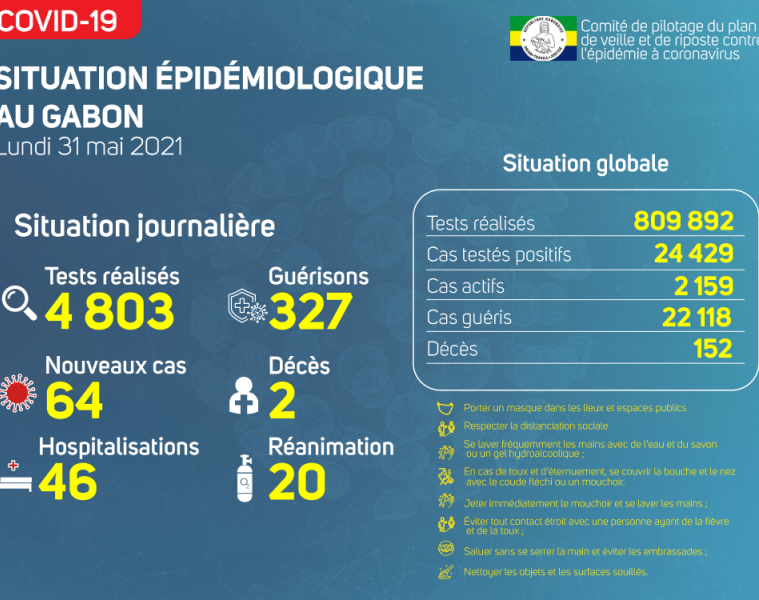 Coronavirus au Gabon : point journalier du 31 mai 2021