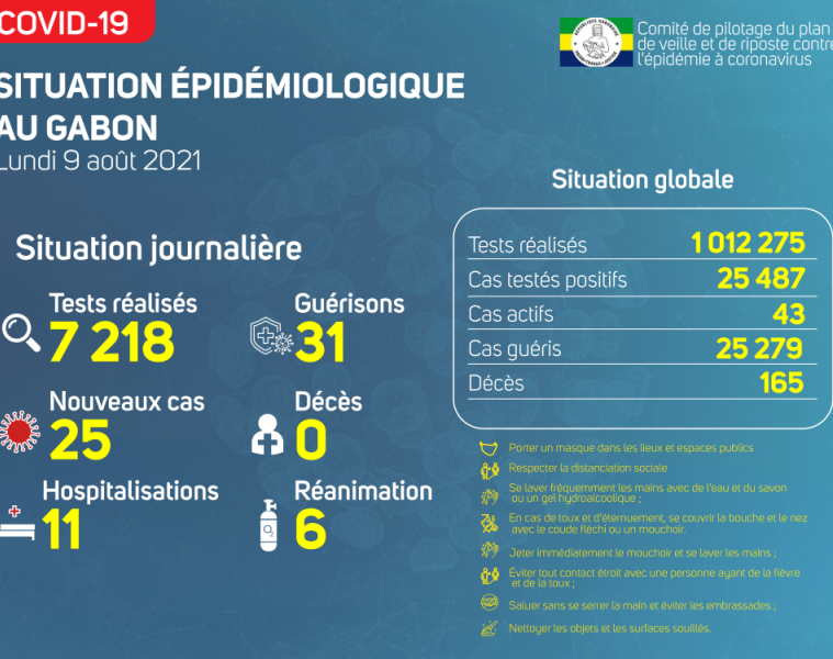 Coronavirus au Gabon : point journalier du 9 août 2021