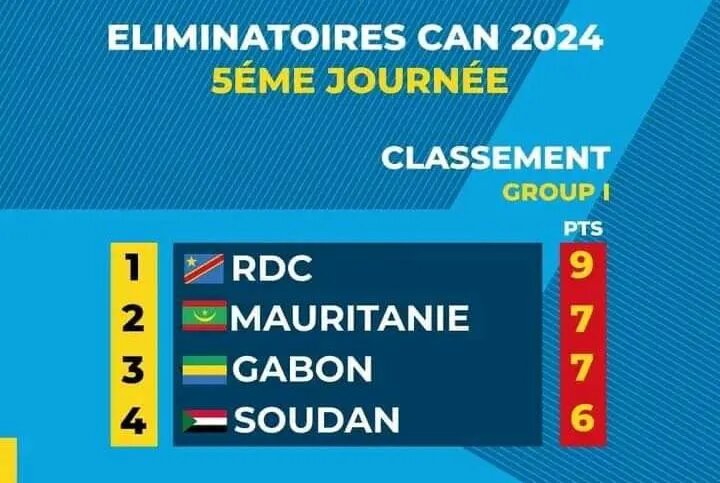 La RD Congo, après avoir battu les Gabonais à Franceville et gagné une bataille juridico-administrative face à la Mauritanie devant la CAF, est leader avec 9 points. Le Soudan ferme le classement avec un seul point en moins (6 points) sur le second du groupe.