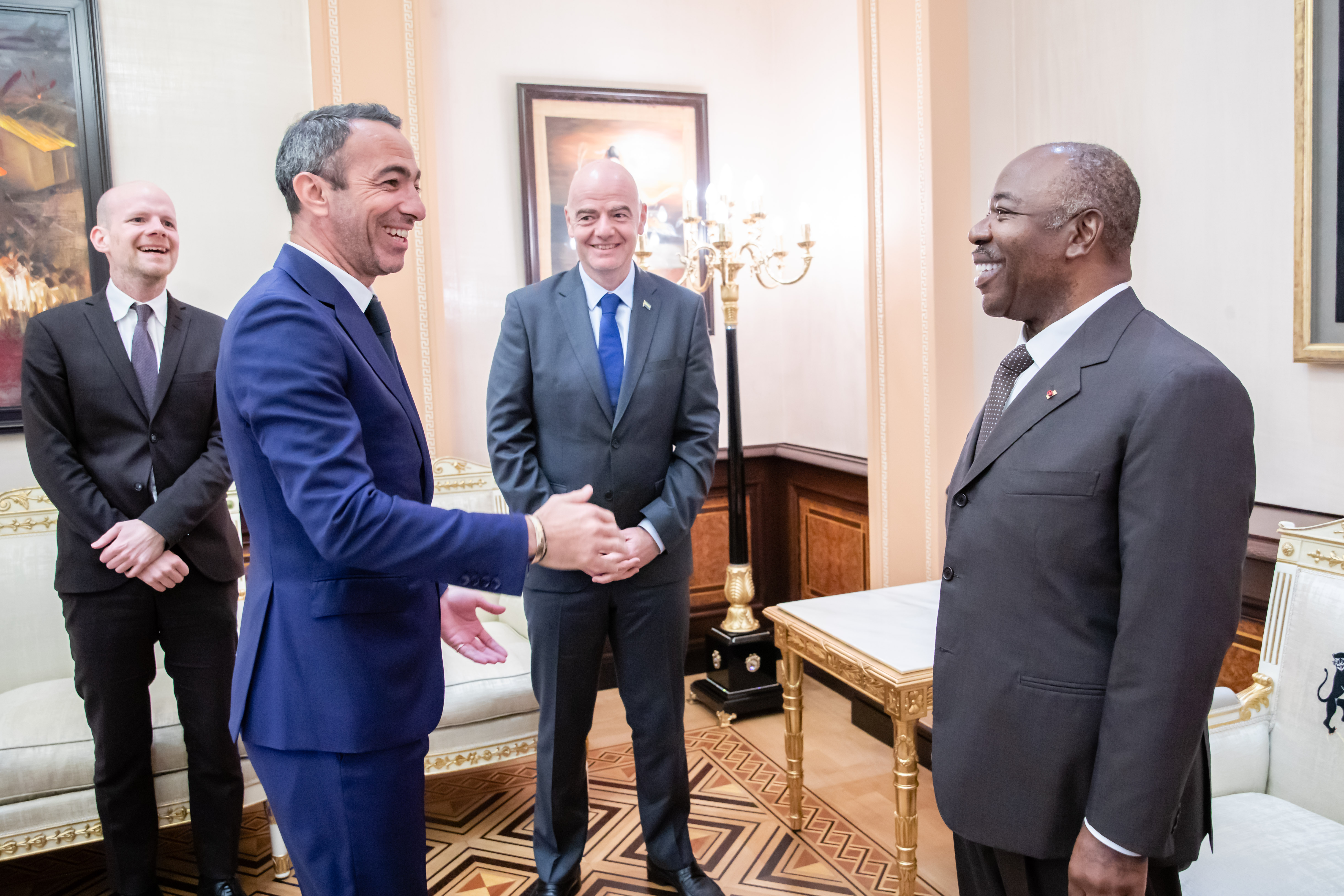 Ali Bongo a reçu ce mardi en audience Messieurs Giovanni Vincenzo Infantino ; Stephen Jackson et Arthur Nkoumou Delaunay, respectivement Président de la Fédération Internationale de Football Association (FIFA), Coordonnateur Résident du Système des Nations Unies au Gabon et Directeur Général de l’Agence Nationale de l’Aviation Civile (ANAC).