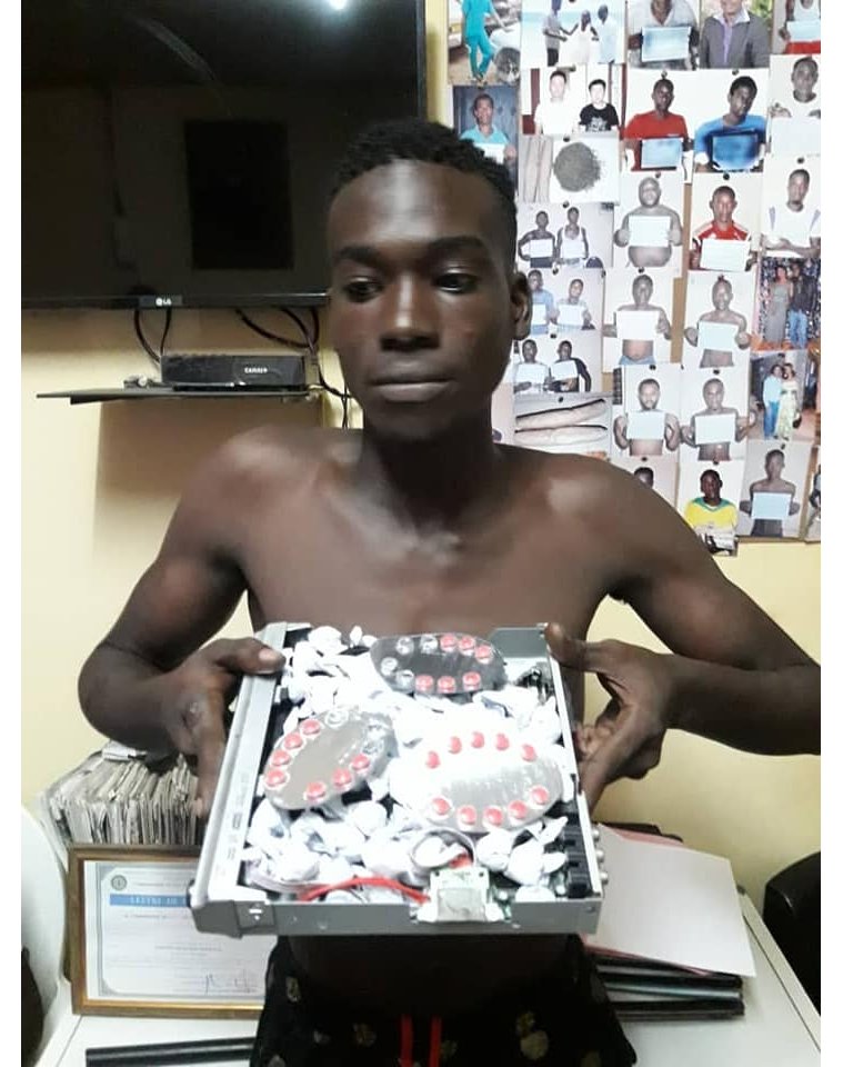 La note d’information du ministère de l’Intérieur relève que « le jeune gabonais était en possession d’un appareil DVD qui était finalement rempli de plusieurs bonbons de cannabis et des plaquettes de tramadol (Cobolos) ».