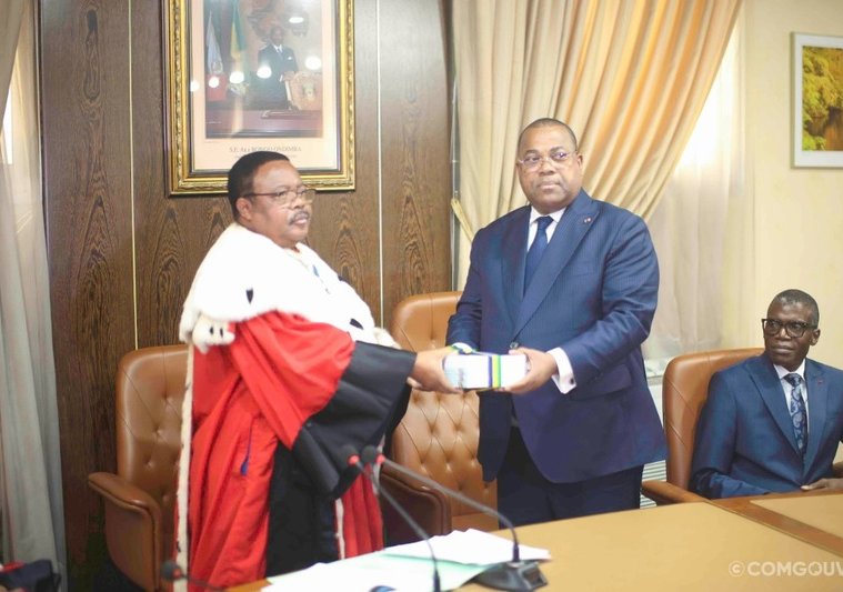 Le Premier ministre Julien Nkoghe Bekale a reçu ce vendredi, en présence des membres du gouvernement, le rapport général sur le contrôle de l’exécution des lois de finances en vue du règlement du budget du Gabon de l’exercice 2018 des mains du Premier président de la Cour des comptes, Gilbert Ngoulakia.