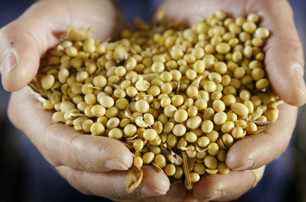 Deux mains en coupe tenant des graines de soja (© Scott Olson/Getty Images)