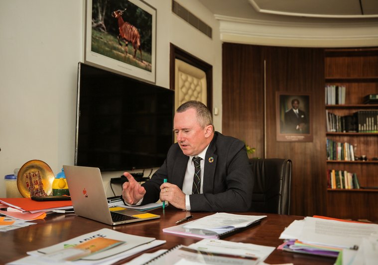 Le ministre des Eaux et Forêts, de la Mer, de l’Environnement, chargé du Plan climat et du Plan d’affectation des terres, Lee White, accompagné du Secrétaire permanent du Conseil national climat (CNC), Tanguy Gahouma Bekale, a présidé ce jeudi par vidéo conférence, la 6ème session ordinaire de la Commission nationale d’affectation des terres (CNAT). Cette réunion a notamment vu la participation du ministre de l’Agriculture, de l’Elevage, de la Pêche et de l’Alimentation, Biendi Maganga Moussavou et des vingt-trois administrations sectorielles composant la CNAT.