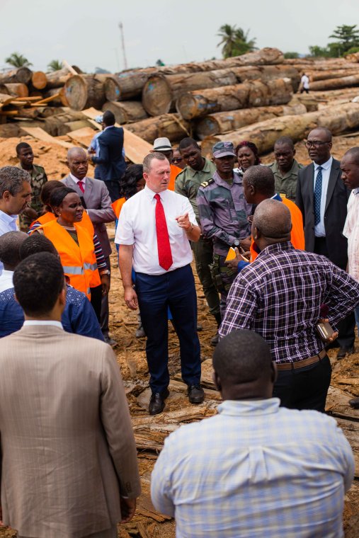 Lee White visite les usines de transformation du bois de la zone portuaire d’Owendo