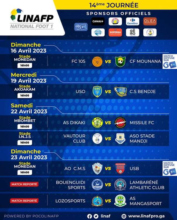 La suite de cette première journée de la phase retour se déroulera du 19 avril avec la confrontation entre l’US Oyem (13e) et le dauphin, le CS Bendjé au dimanche 23 avril 2023 avec l’affiche l’A.O CMS (3e) face à l’Union Sportive de Bitam (9e).