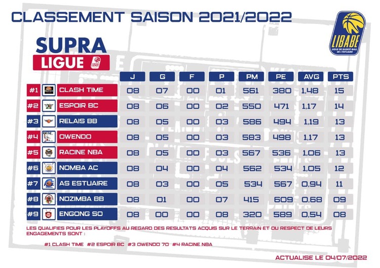 Au sortir de plus de deux mois de compétition, quatre clubs ont dominé cette première phase et se voient qualifiés pour les play-offs, il s’agit de notamment de Clash Time, conduit par Fabrice Nollet. Il va avec les faveurs des pronostics mais seulement le groupe composé des plusieurs anciens basketteurs pourrait être surpris par la fraicheur physique qui semble avoir leur premier adversaire.